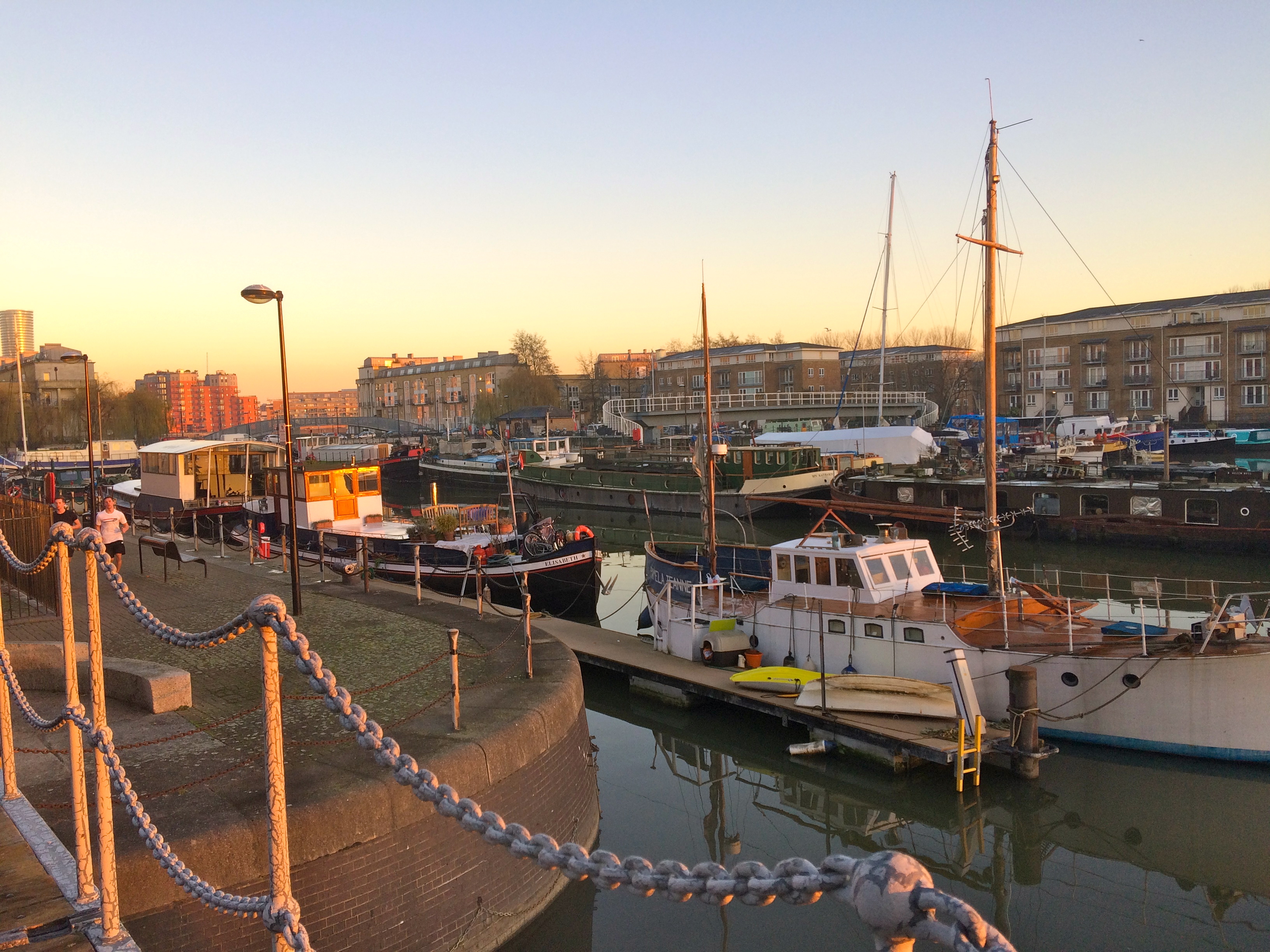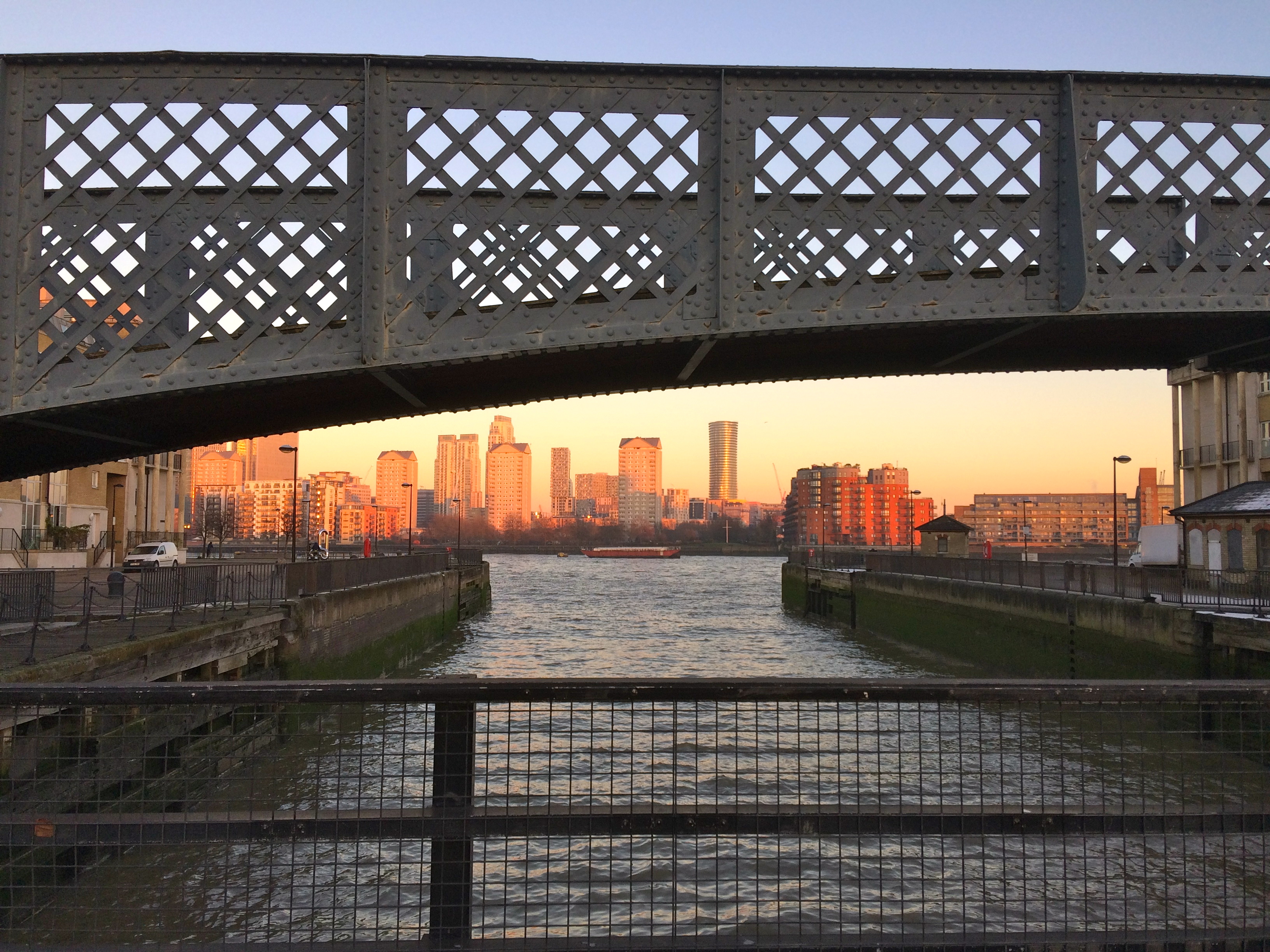 Greenland Dock is London’s oldest surviving dock from the now-lost Surrey Commercial Docks Company (closed in 1969). The buildings and warehouses that once lined its sides were used to boil whale blubber to make oil. Whales were brought here by whaling ships chartered from Greenland, hence the dock’s name. One can only imagine what that must have smelled like! Now, the sites are home to new-build riverside homes with sunset views.