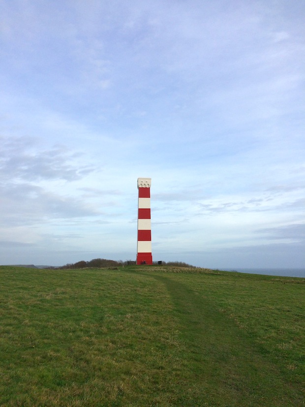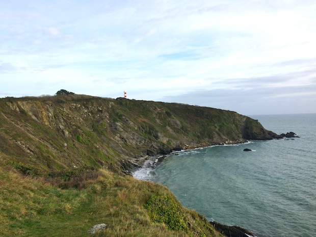 Gribbin Head is the red and white striped cliffside pillar that marks the halfway point for walkers, built originally to warn ships of their proximity to the cliffs. Once you pass the tower, you can catch a glimpse of your destination a few rolling hill dips away from you.