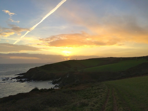 If you time your walk to end with the sunset, you are privy to views like these with Gribbin Head behind you.