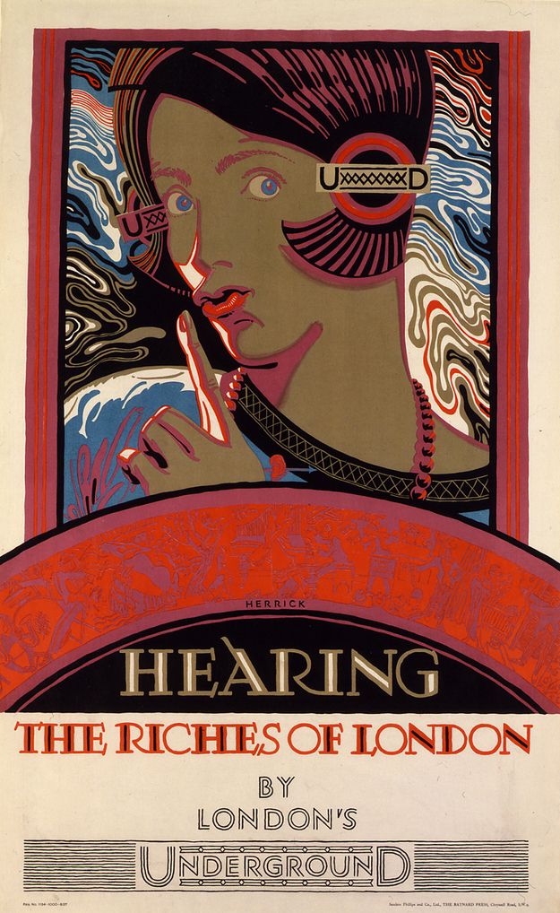 It is difficult to imagine now that touching, hearing and smelling the Underground and London’s busiest streets would be pleasurable things to appeal to our senses, but this was put to great effect in early Underground posters.