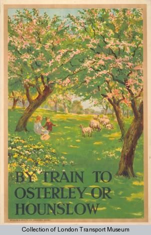 Another interesting aspect they bring up is the ‘countryside’ that is advertised as being “just a tube ride away.” There is so much open green space, albeit a little idealised. Today, the depictions of places such as Hounslow, Osterley, Uxbridge and Edgware are unrecognizable from their rural early 1900s counterparts. Here is what some of this countryside looks like now with its corresponding posters: