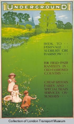 Finally, our last stop on this flying tour is to Harrow and Perivale, advertised as being “the heart of the country” where “field-path rambles in old-fashioned style” could be found.