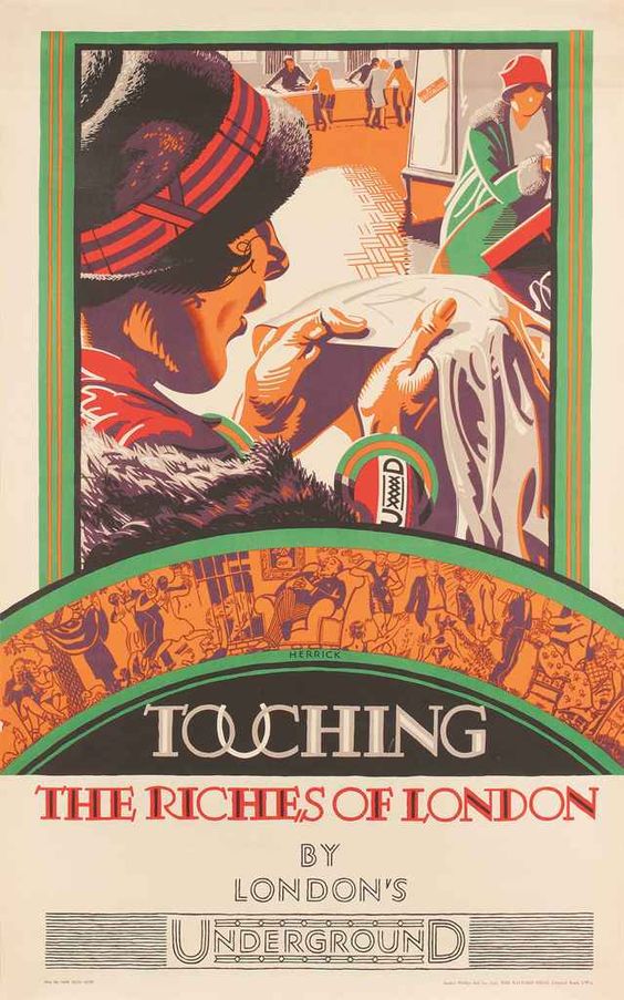 Frederick Charles Herrick is the gentleman responsible for the early 20th century tube adverts for the London Underground and a comprehensive collection of his work is held to view at The London Transport Museum in Covent Garden. But what I want to focus on today is a little ‘then and now’ ~ a bit of voyeurism into the ideas and pictures that once so attracted a London audience to Herrick’s posters and the messages behind them. How do they compare to the messages and adverts out there today? Welcome to the lights, seasons, smells and poetry that once festooned the carriageway walls of post-war London.