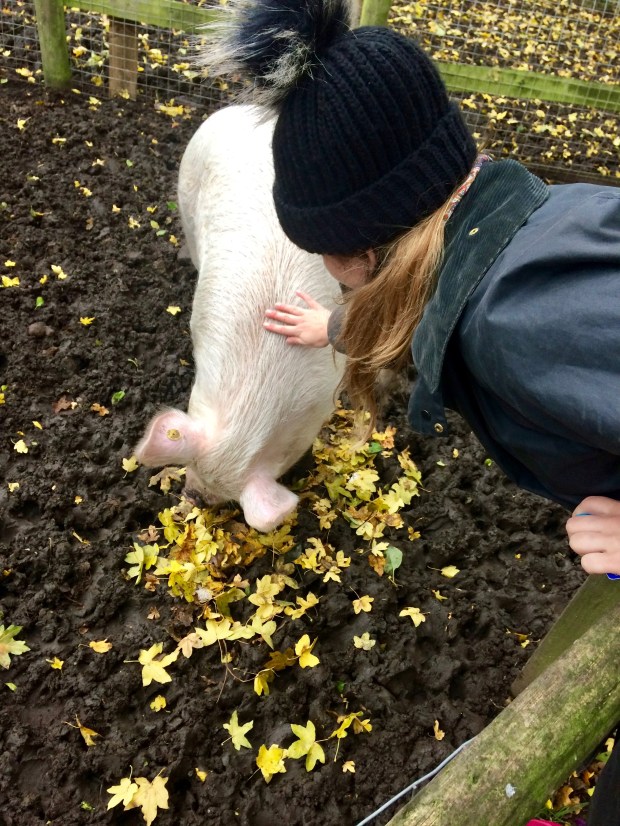 We were recording the sound the pig was making snuffling among his leaves with our phones because it was such an incredible noise!