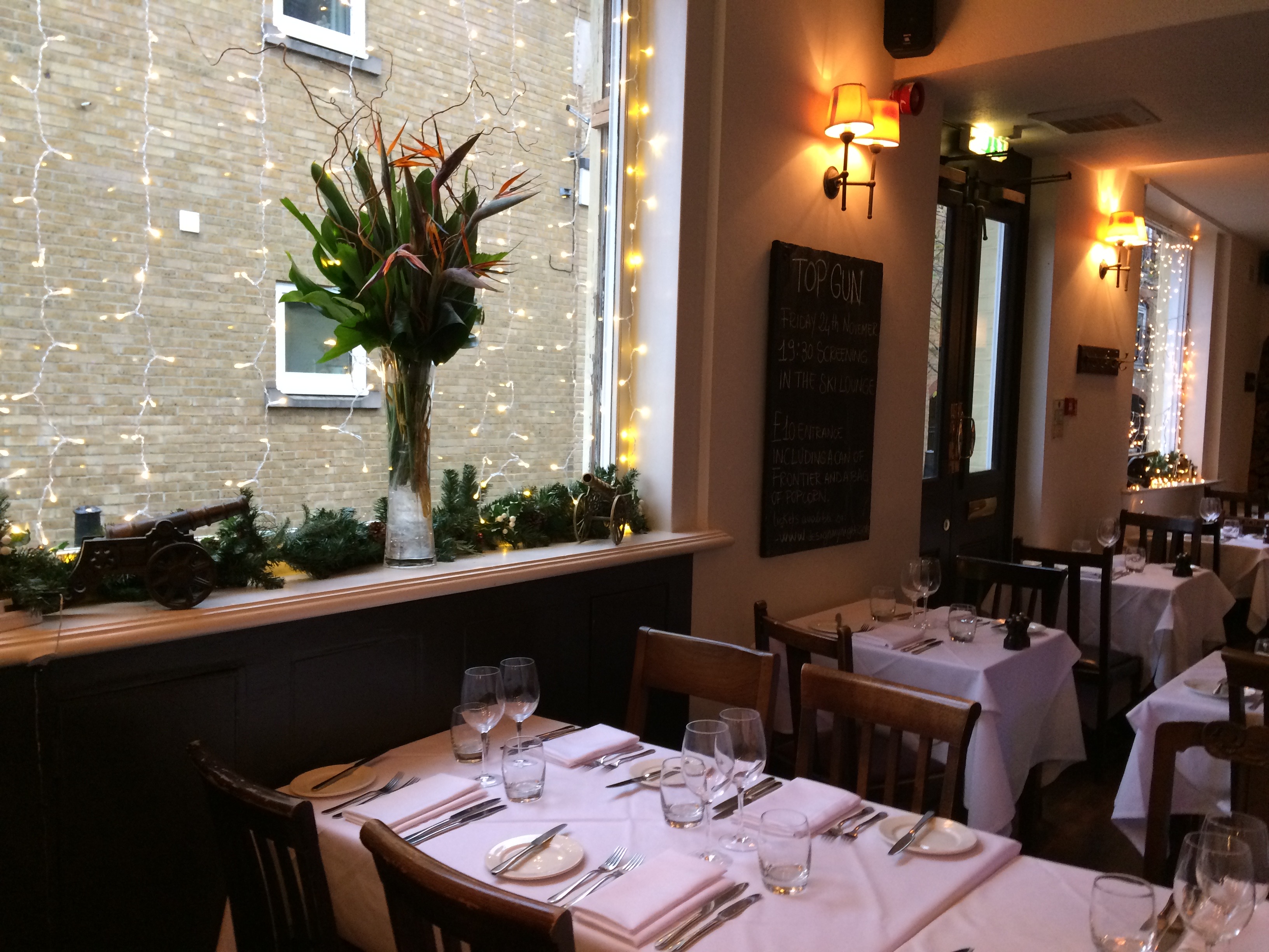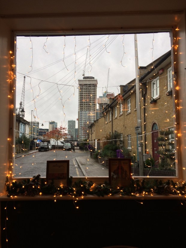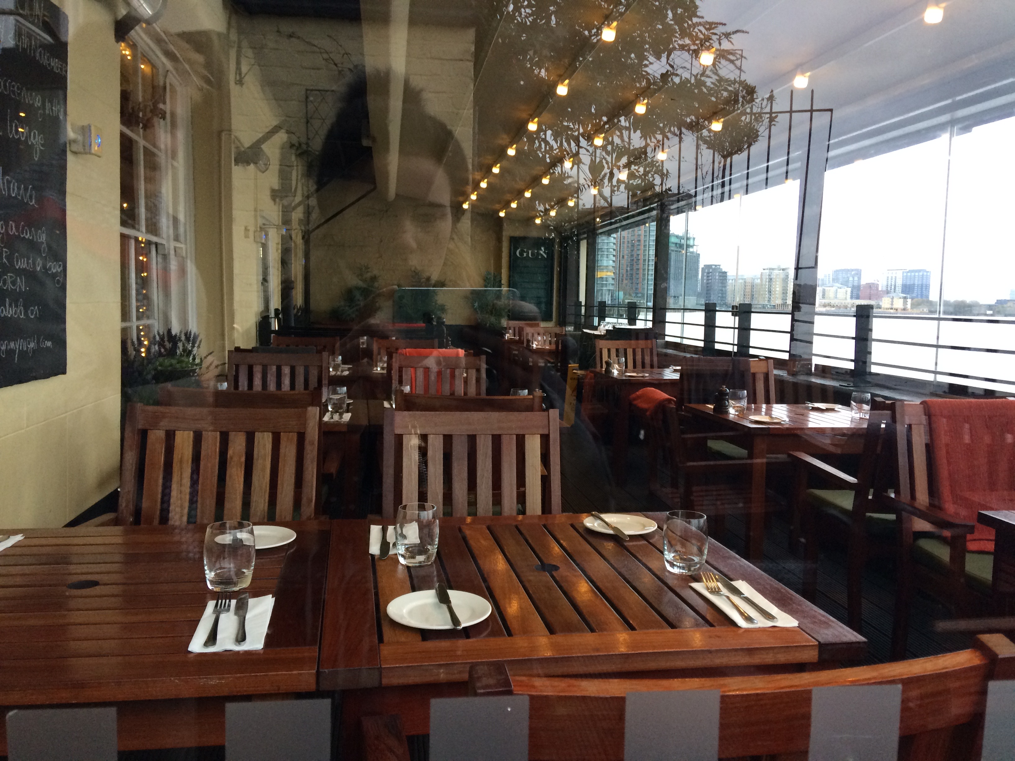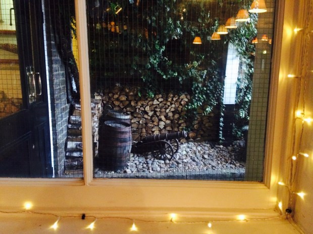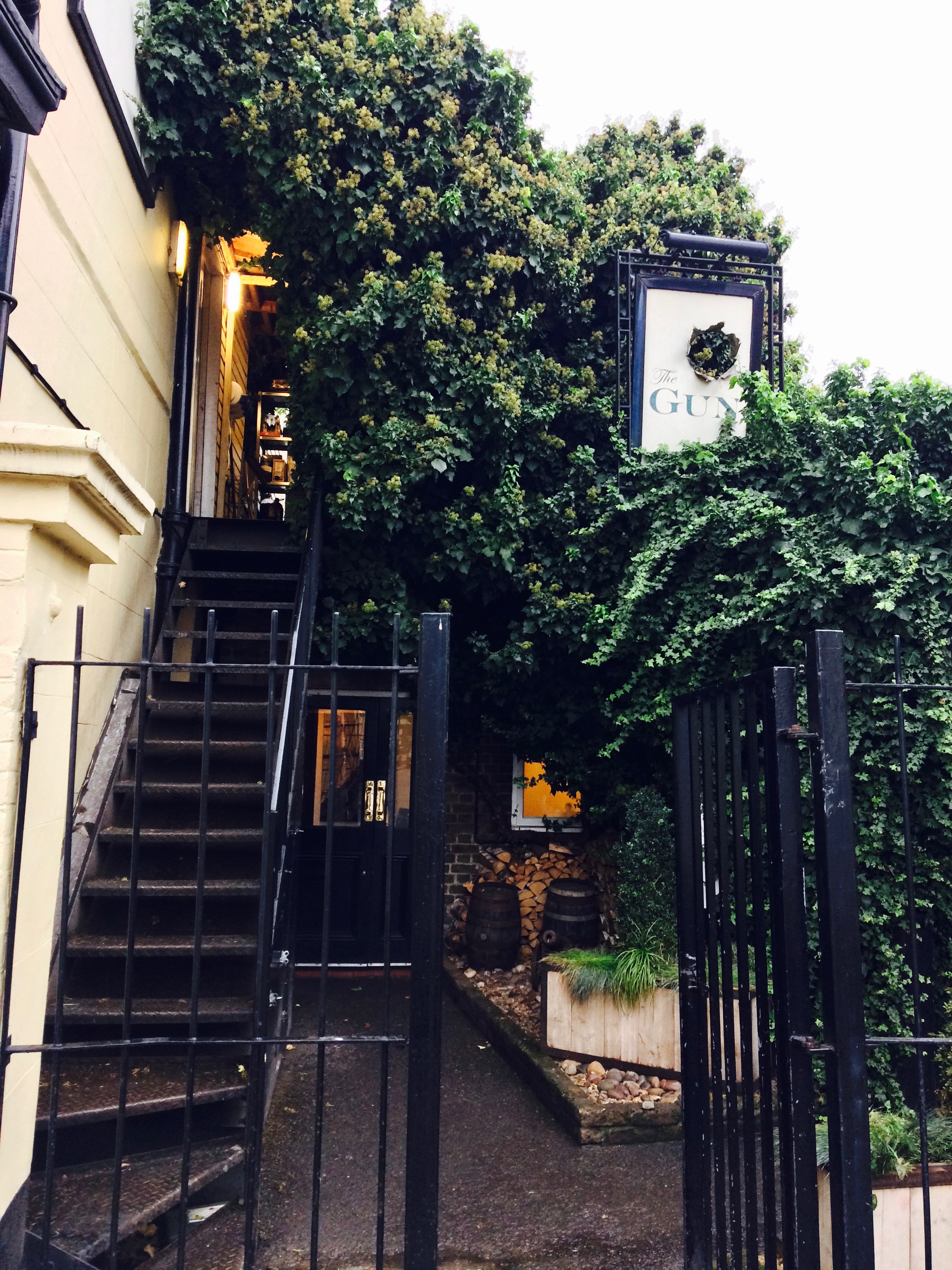 Here we are ~ note the characteristic ‘cannon hole’ in the pub sign! This is The Gun at Coldharbour, a unique Docklands pub that serves food sourced from around the British Isles.