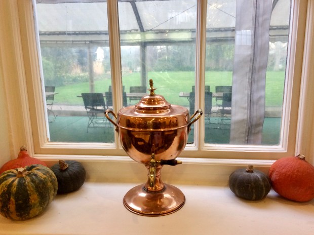 Lemons, the textures of wood and large greenhouses stocked full, reminding us of climes much warmer than England’s, are bursting with colour and scent as we wind our way to an opening on the grass and come across a willow tree bending over the entrance to the cafe.