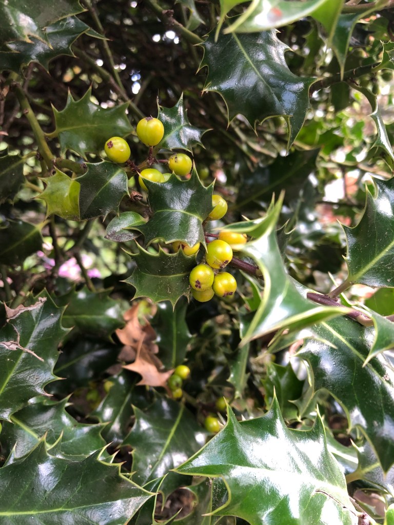There are a couple of small things that are, in fact, not small at all when it comes to these kinds of friendships. Firstly, and I say this with love, what we do not need in the midst of crisis is for someone to reflect back to us and confirm our own brokenness. We need someone to say, “Oh look, you fell down and you scratched your knee, but see ~ you can get back up again, and you can lean on me, and your scratch will heal.” Keep an eye out also for signs of serendipity, of things being right with the Universe when you are together. I think we are more aware of these and more akin to them when we are with someone we trust deeply and who brings us great joy. For me, they are signs that remind me of my childhood, of the seasons changing even as we enjoy the late flush of Summer. A bright green holly bush, ready for Autumn and the following Winter to turn its berries red…