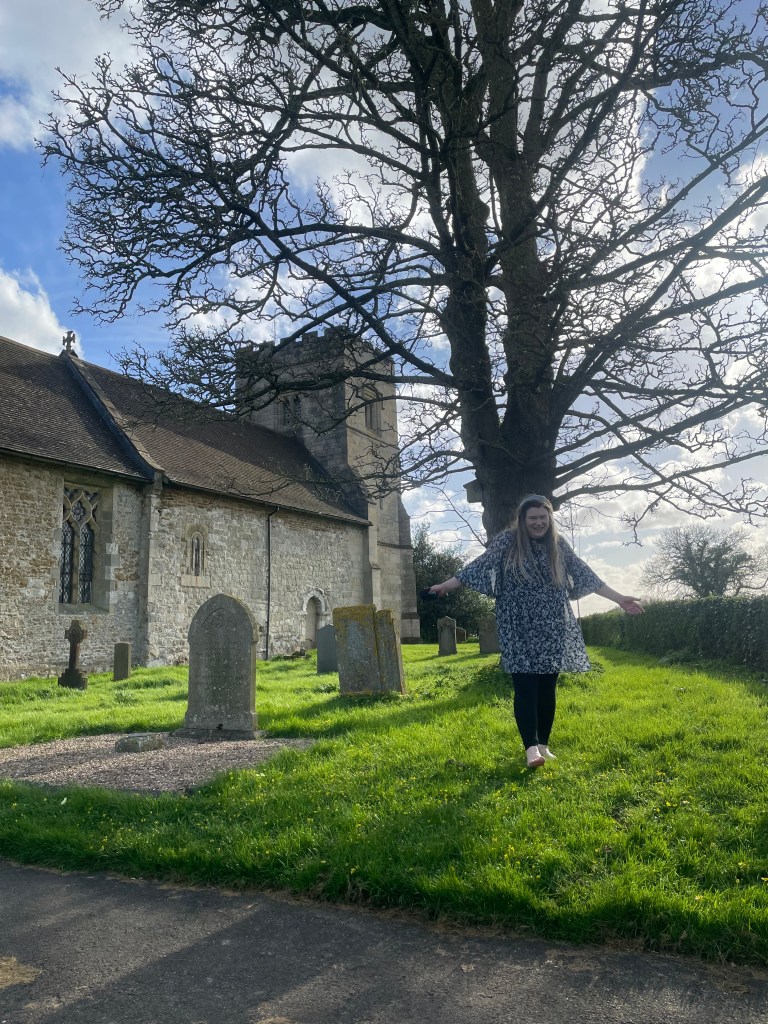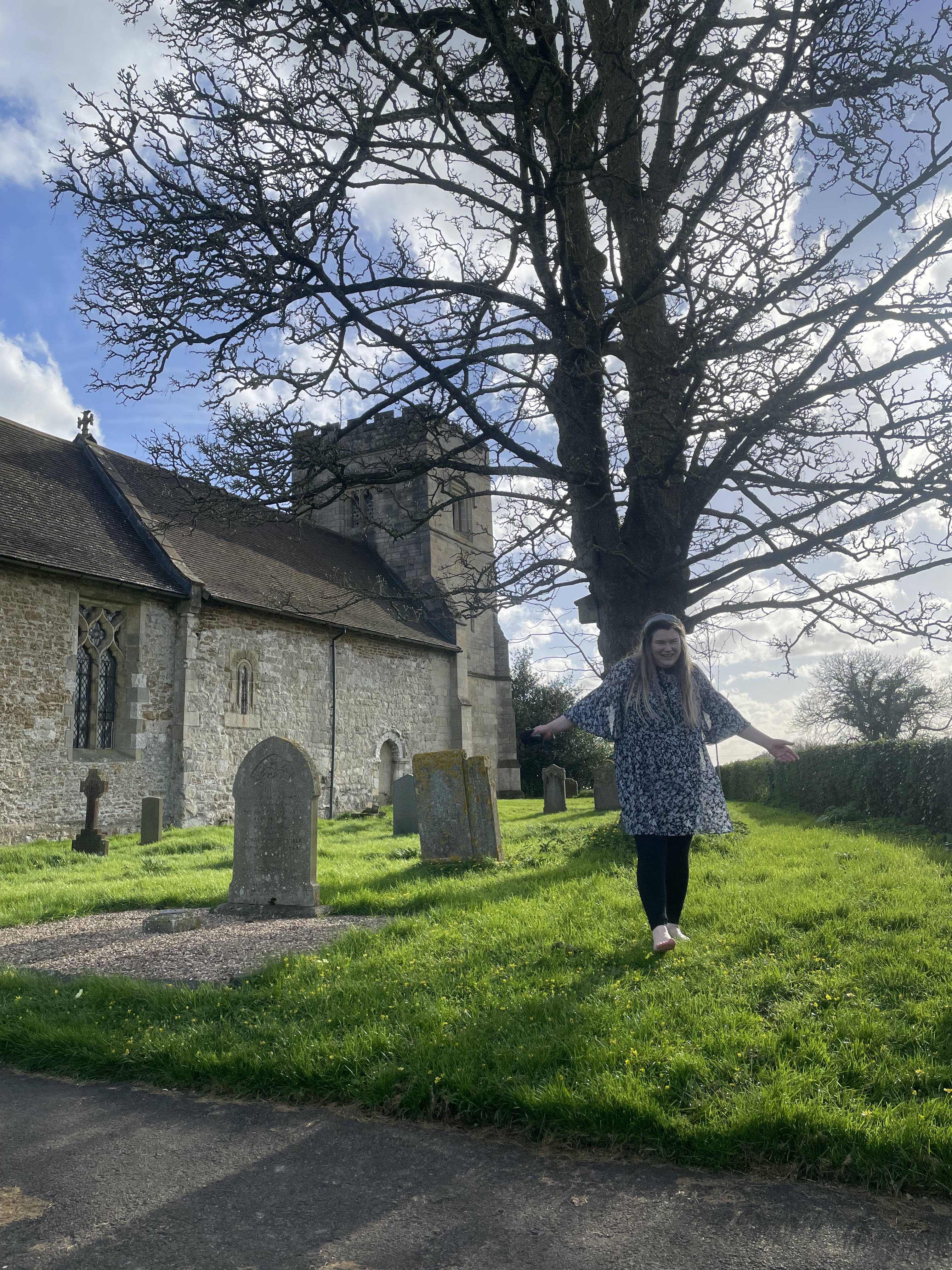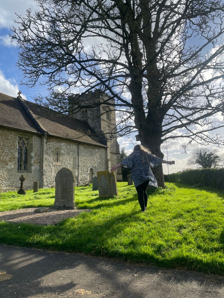 Outside, we walked around the church and through the graveyard, careful of our steps. But the grass was so thick and lush that my instinct told me there were no spiky weeds beneath my feet. So I found a bench on the church grounds and sat down. “Just give me a moment”, I said to my mum. I stripped off my boots and socks ~ my skin so pale and white it looked translucent in the early April sunlight ~ and placed my soles upon the earth. It was bouncy, soft and cool. I spread out my arms and felt genuine joy and release. A smile spread across my face.